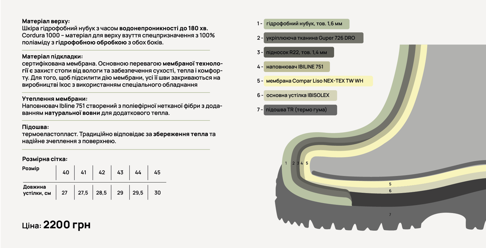 Тактичне взуття з мембранною технологією - це спільний результат нашої праці тривалістю в 9 місяців. Ми збирали найкращі матеріали з усього світу, придбали нове обладнання та познайомилися з усіма тонкощами мембранної технології. Врахували зворотній зв'язок від наших військових. І традиційно зашили відповідальність та віру в перемогу у кожну пару.