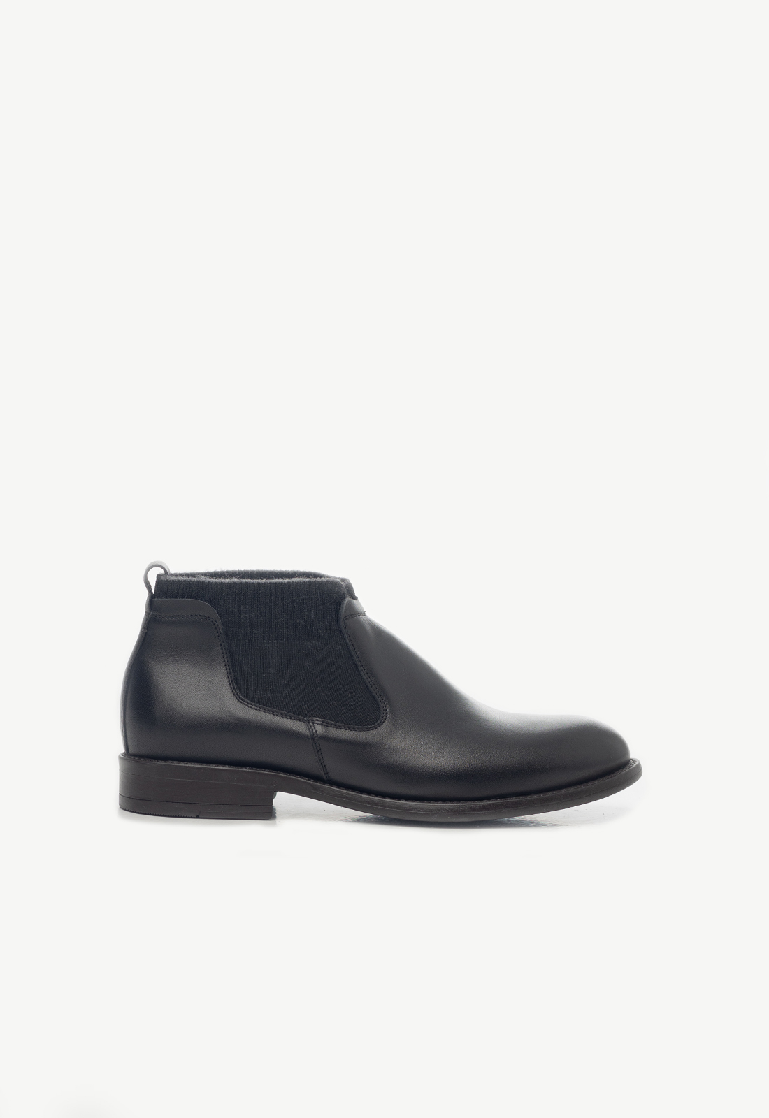 Челсі з шерстяною гумкою виконані з чорної лицевої шкіри. Перевірена зручна колодка та гумова підошва з амортизуючою вставкою з матеріалу EVA забезпечують комфорт при ходьбі. Черевики утеплені шерстяною байкою. Гумка в челсі також в складі має шерсть та побудована в спосіб шкарпетки. Одночасно і класична, і повсякденна модель взуття на осінь те теплу зиму.