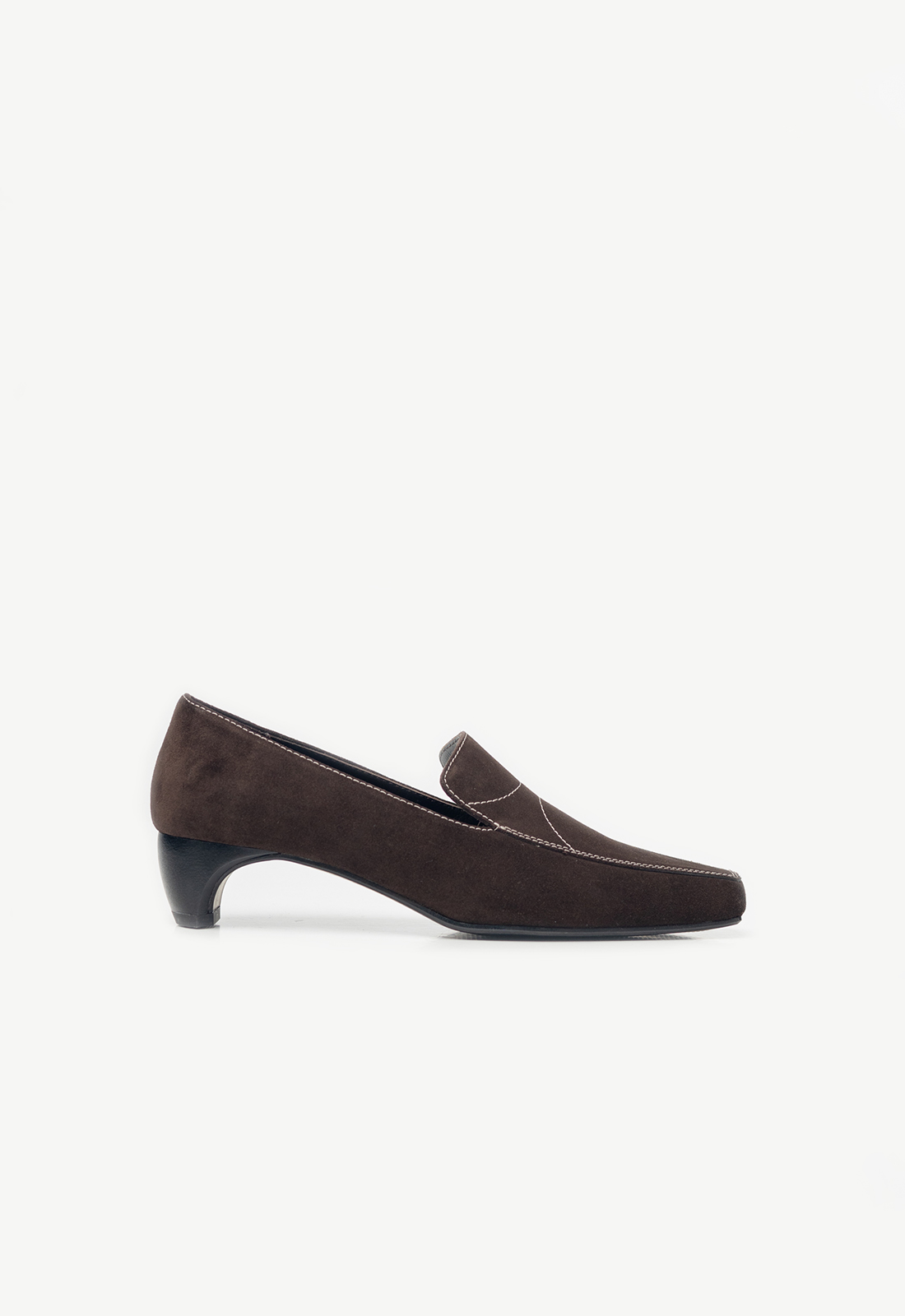 Лофери виконані в коричневій замші та оздоблені акцентними стібками. Доступні також у чорній лицевій шкірі.