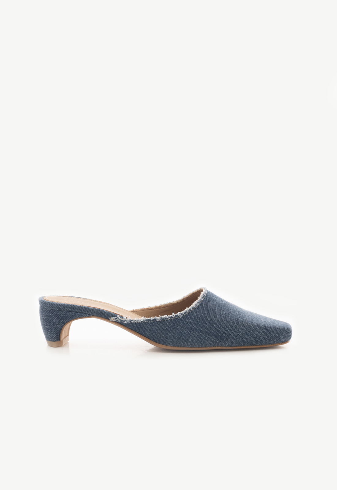 Мюлі доступні у трьох виконаннях — червоному, білому кольорах та денімі. Висота підбору – 4.5 см.