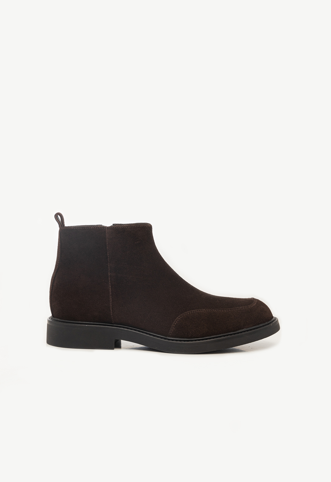 Класичні черевики з блискавкою з замші глибокого коричневого кольору. Виконані на гумовій підошві лінійки Gum Touch, яка полюбилась через високу зносостійкість та комфорт. Всередині мають вставку з матеріалу Eva для додаткового тепла та амортизації під час ходьби.