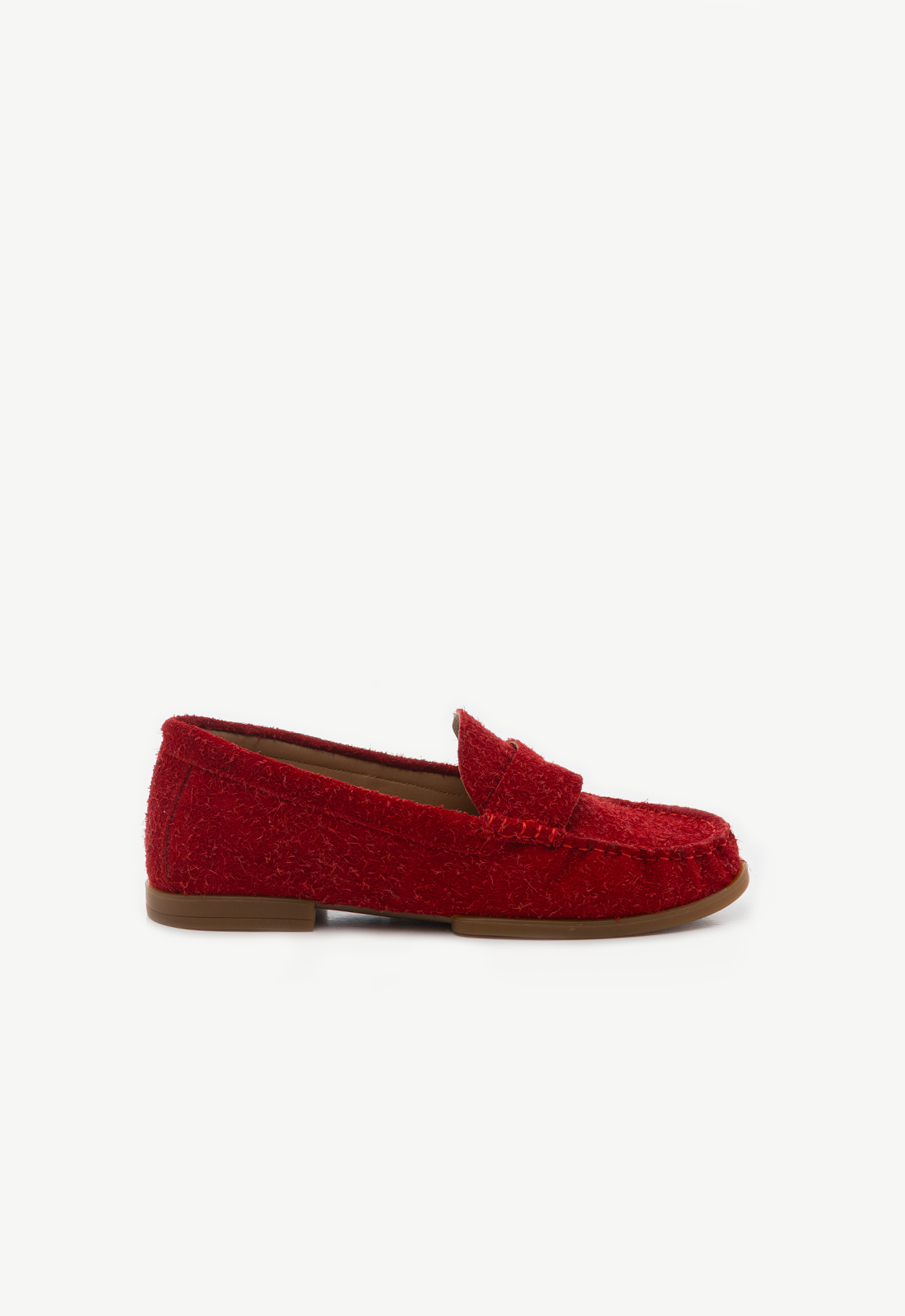 Червоно-шершаві мокасини кольору пухнастих тюльпанів.